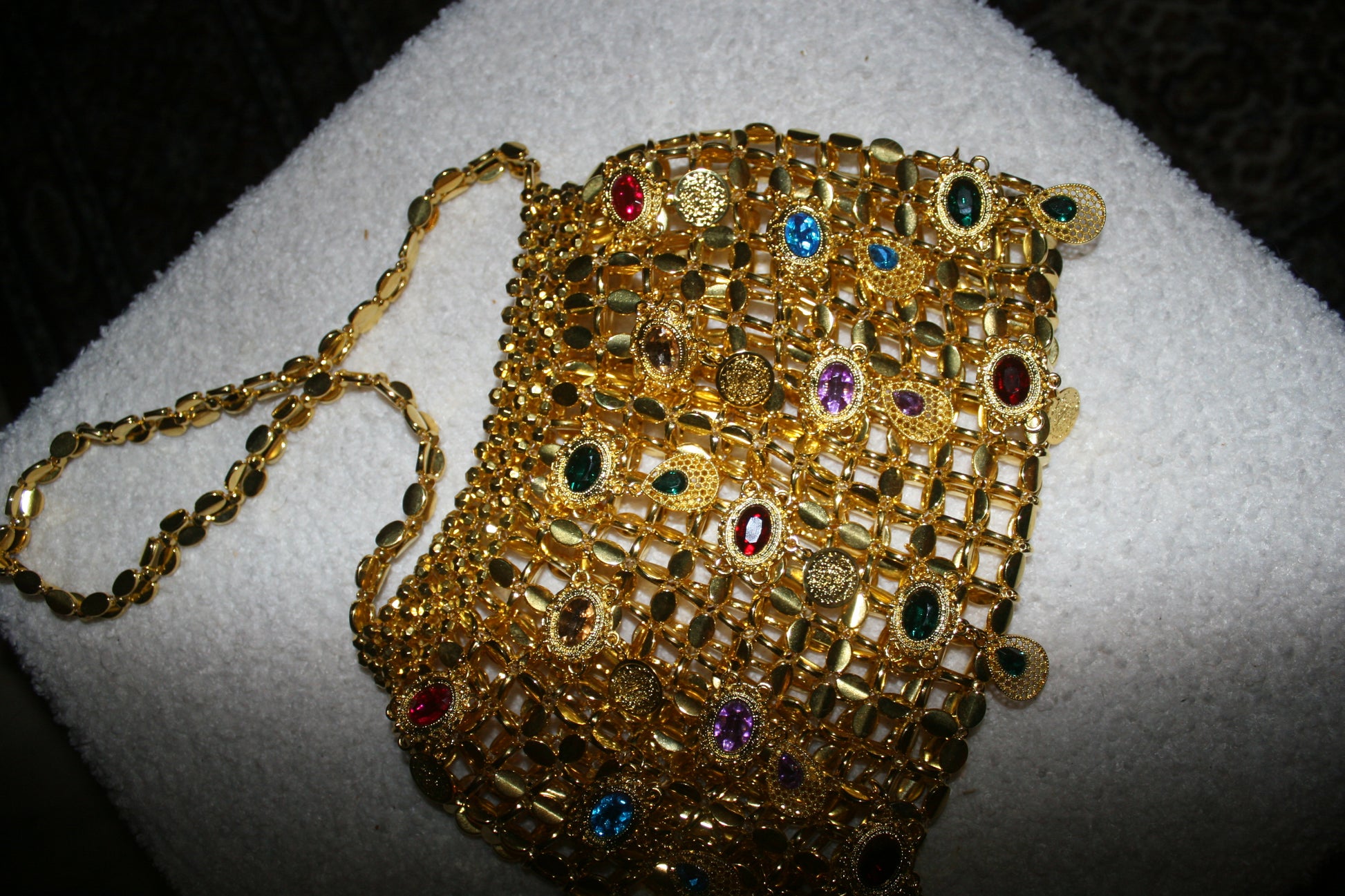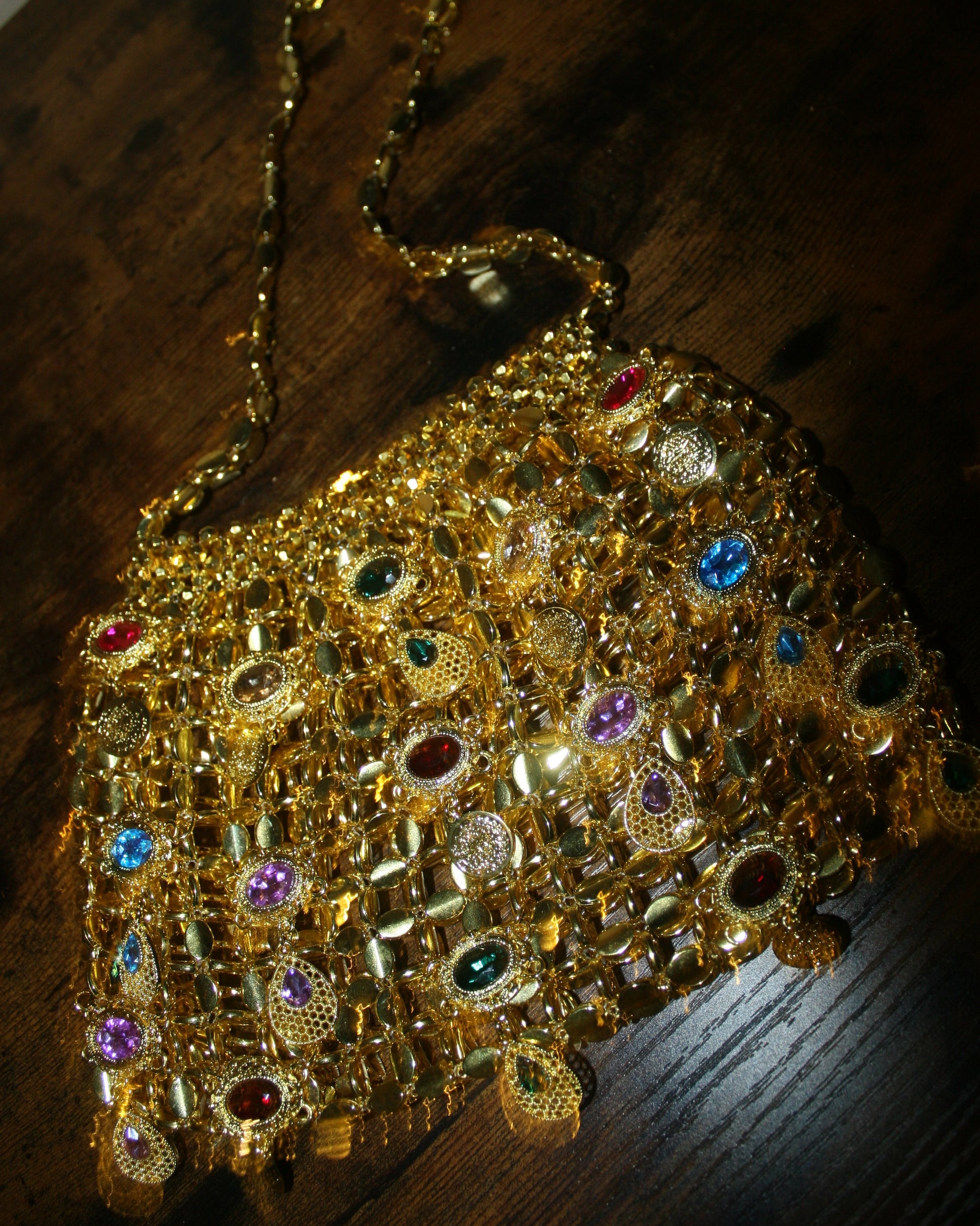 Chaque pierre, soigneusement choisie pour sa teinte vibrante, transforme ce sac en un bijou à part entière. Il capte la lumière sous tous les angles et apporte une touche de grandeur et de raffinement à n’importe quelle tenue.