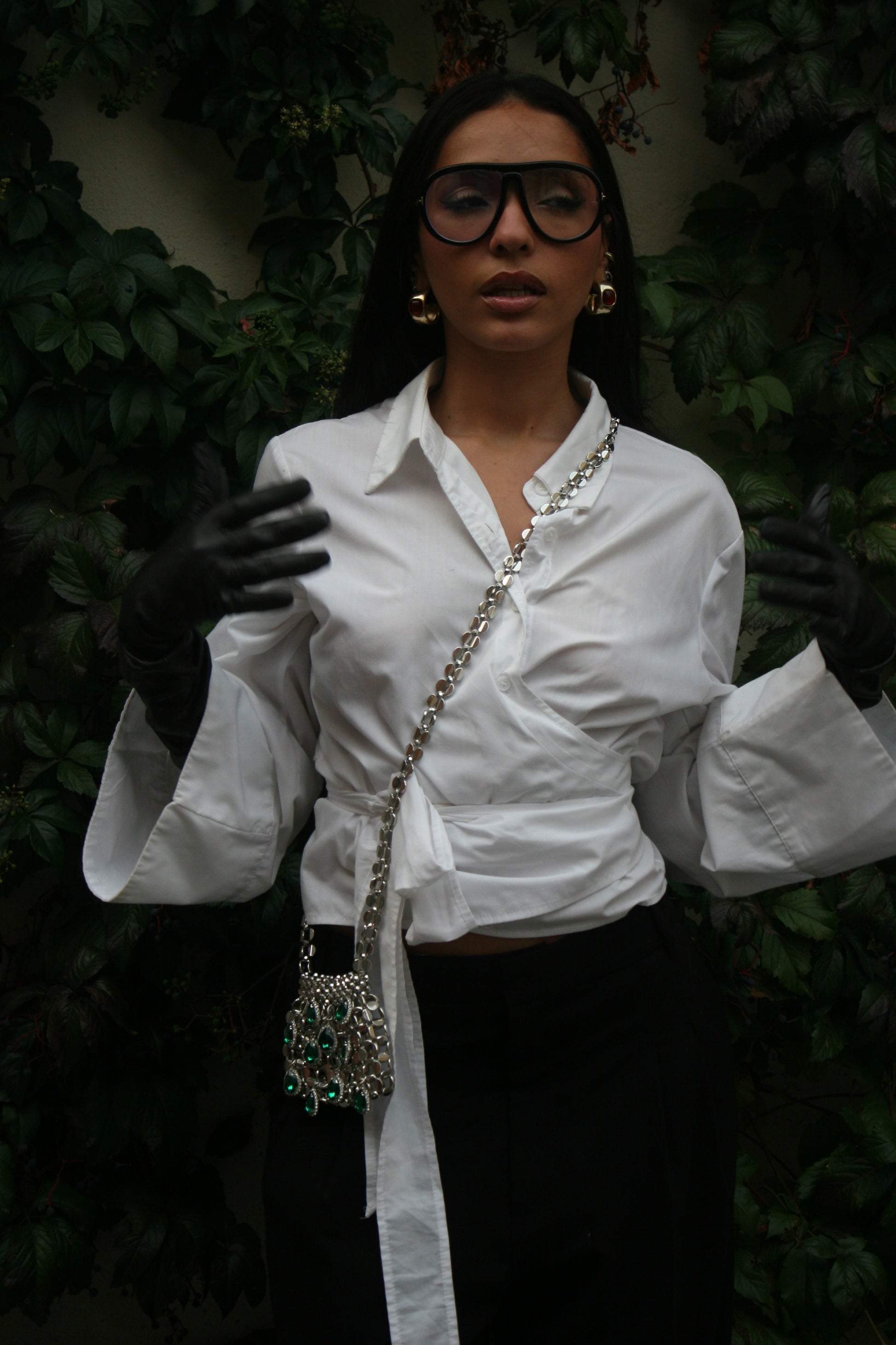 Doté d’une bandoulière élégante, le Mini Esmeralda Silver allie raffinement et praticité. C’est un bijou miniature, pensé pour illuminer vos tenues avec justesse et sophistication.